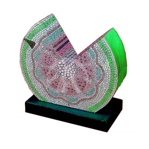 Model 40 times enlarged, showing the cross section of maize pant�s monocotyledonous stem (zea mays), mounted on base with key card.