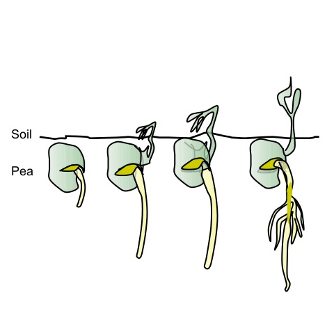Eight-piece model for comparison of three different types of germination methods: monocot, dicot and gymnosperm.