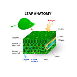 3-Dimensional model of leaf showing detailed structure of transverse section and longitudinal section, mounted on base with key card.