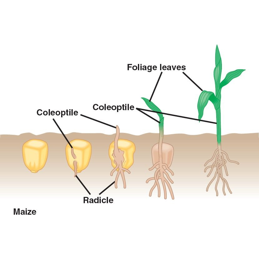 Model showing the germination of monocot plant (maize) seeds of development, mounted on base with key card.