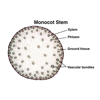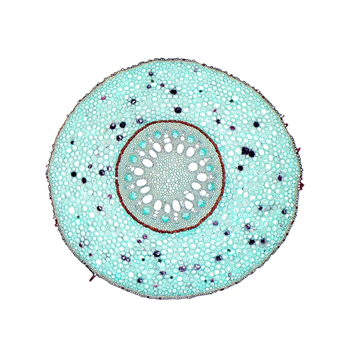 Showing various tissues vascular bundles in transverse section of monocot stem of maize, mounted on base with key card.