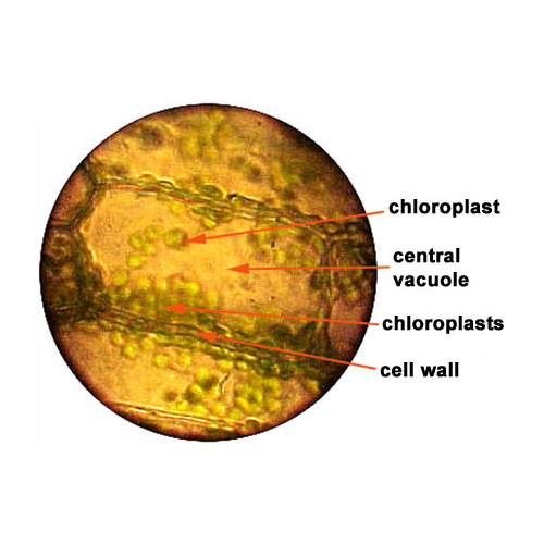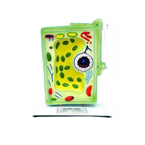 Model of a typical plant cell, magnified 50 million times. Shows the detailed structure including ectoplasm, cytoplasm, endoplasmic recticulum, vacuoles etc. Nucleus is removable, mounted on base with key card.