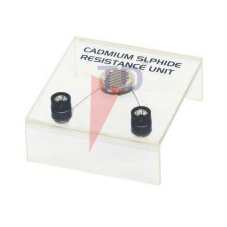 With photo-sensitive resistor mounted on base as described. Resistance inversely proportional to light intensity.