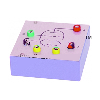 Mounted on base, with 4mm color coded sockets, with circuit diagram printed to explain the principle of triode.