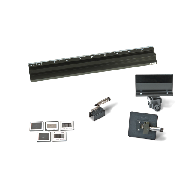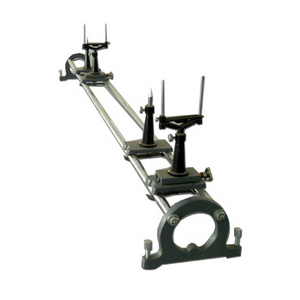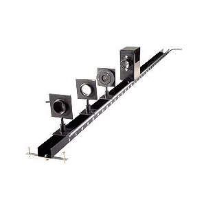 One meter length, single square stable graduated rod, fitted on two sturdy metal feet with leveling screws. Supplied with four sliders with index marking. Two of the sliders are provided with transverse fine motion knobs. Supplied complete with two lens holders and two sharp optical pins.