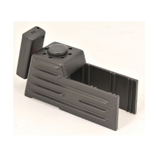 Consisting of metal pillar with clamping screw, supported on a black base 100 x 50 mm with an engraved index line at one end to accept rods of 6 mm diameter as used on standard optical bench fittings.