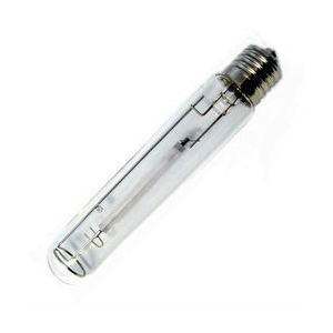 A glass tube constricted along the middle portion to concentrate the discharge glow & provided with cylindrical metal electrodes connected to 4 mm plugs mounted in moulded plastic end caps.
